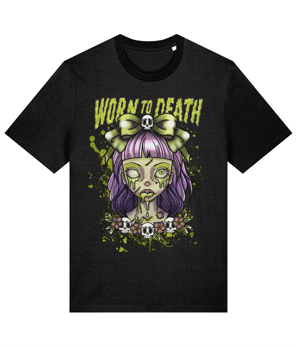 Psycho Siblings – Worn to Death Meet Putrid Polly in her darkest form. Printed on deep black with toxic green slime detail, this version leans fully into underground...