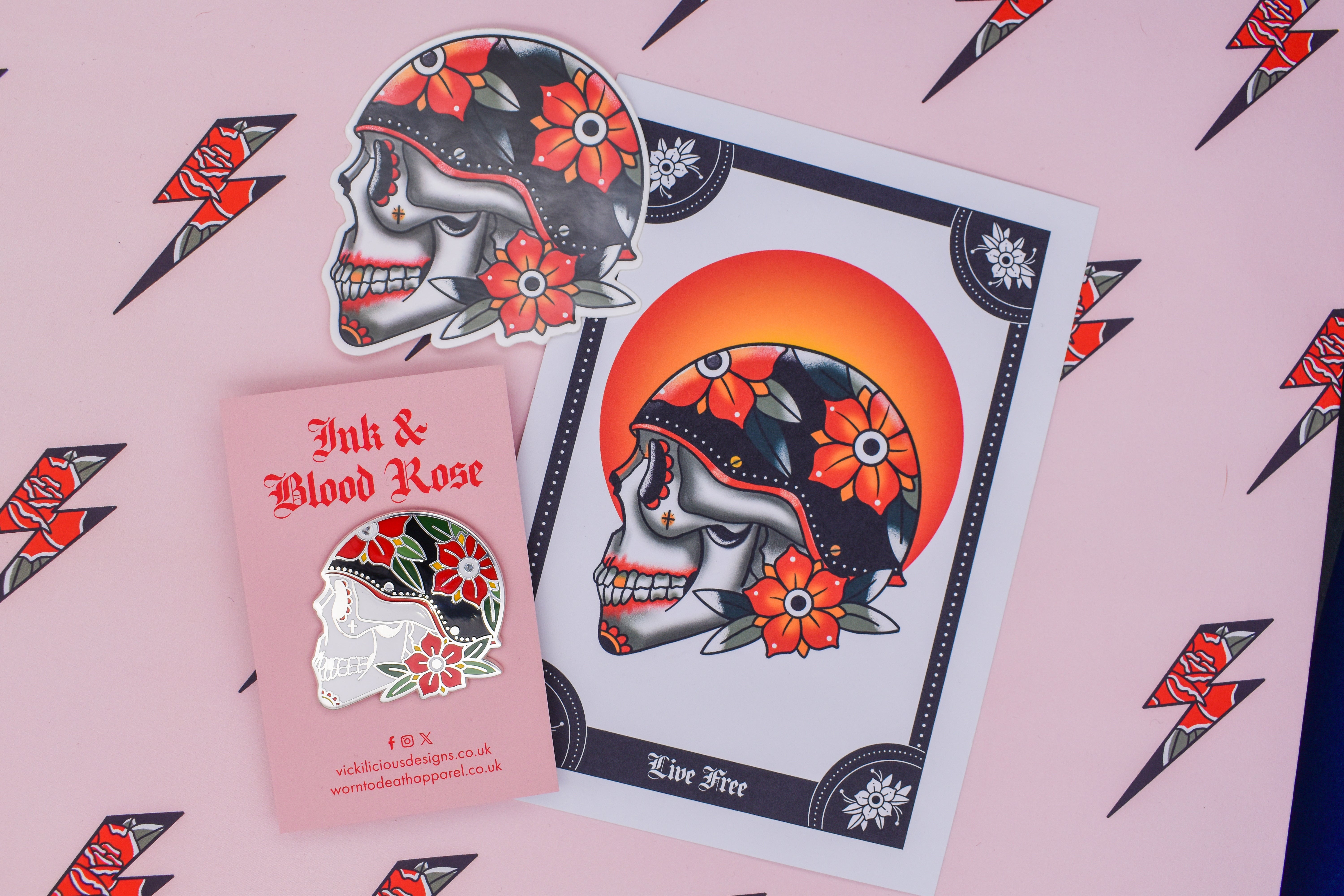 This was my first Kickstarter project “Ink & Blood Rose” it’s inspired by traditional tattoo flash and culture. I wanted to create something bold, edgy & beautiful that hopefully you guys will wear to death!
