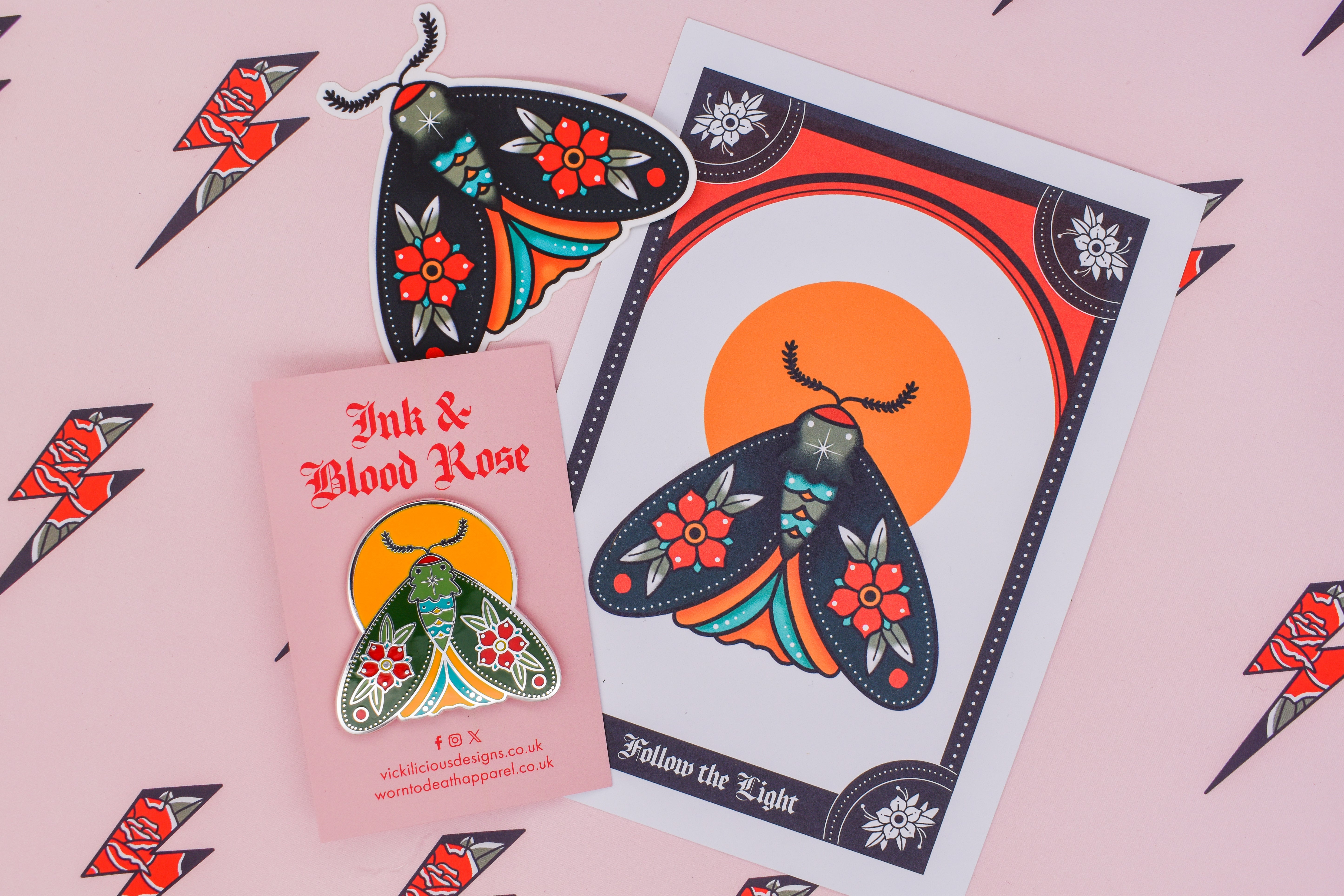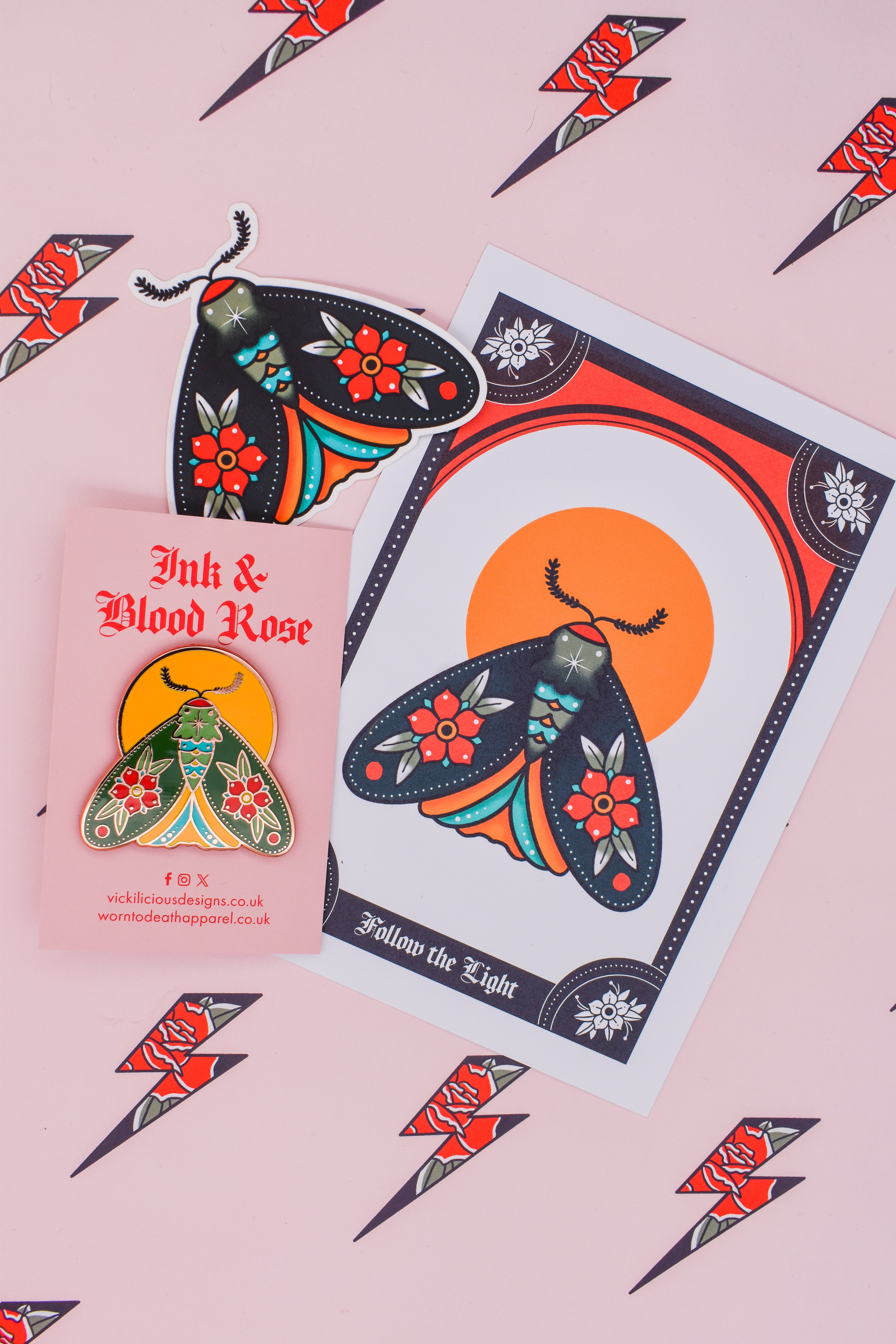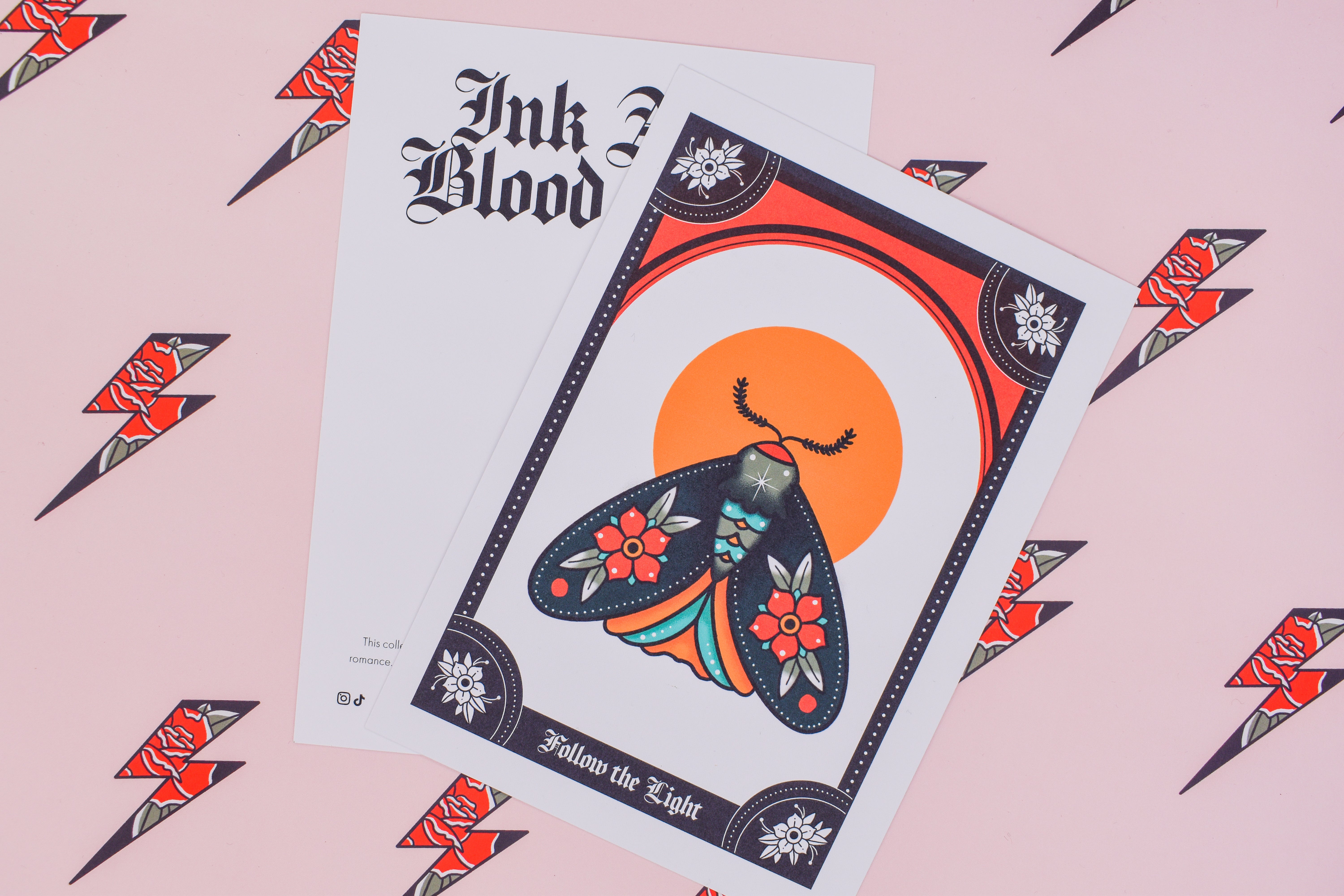 Follow the Light | Floral Moth Tattoo | Ink & Blood Rose Collectors Set