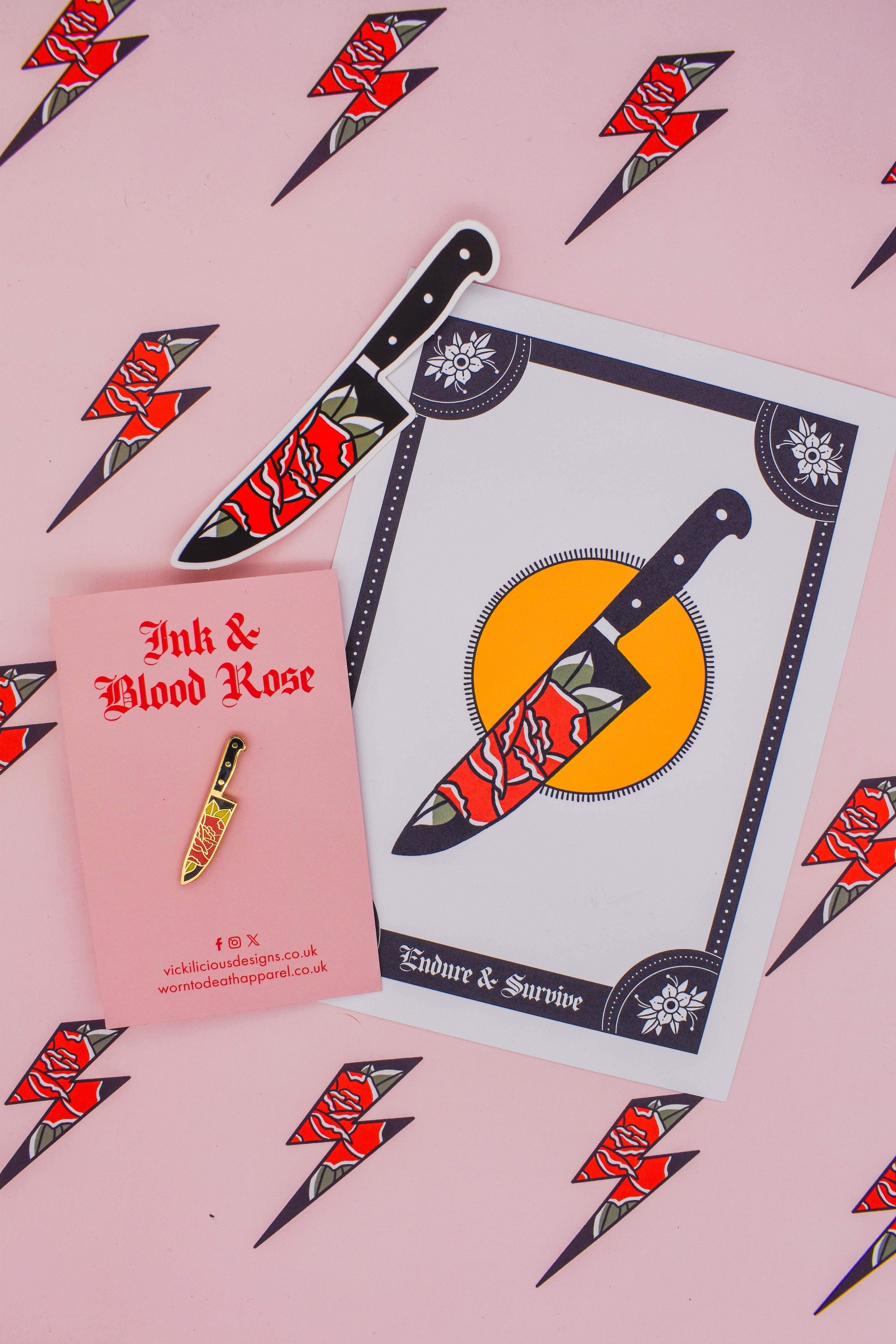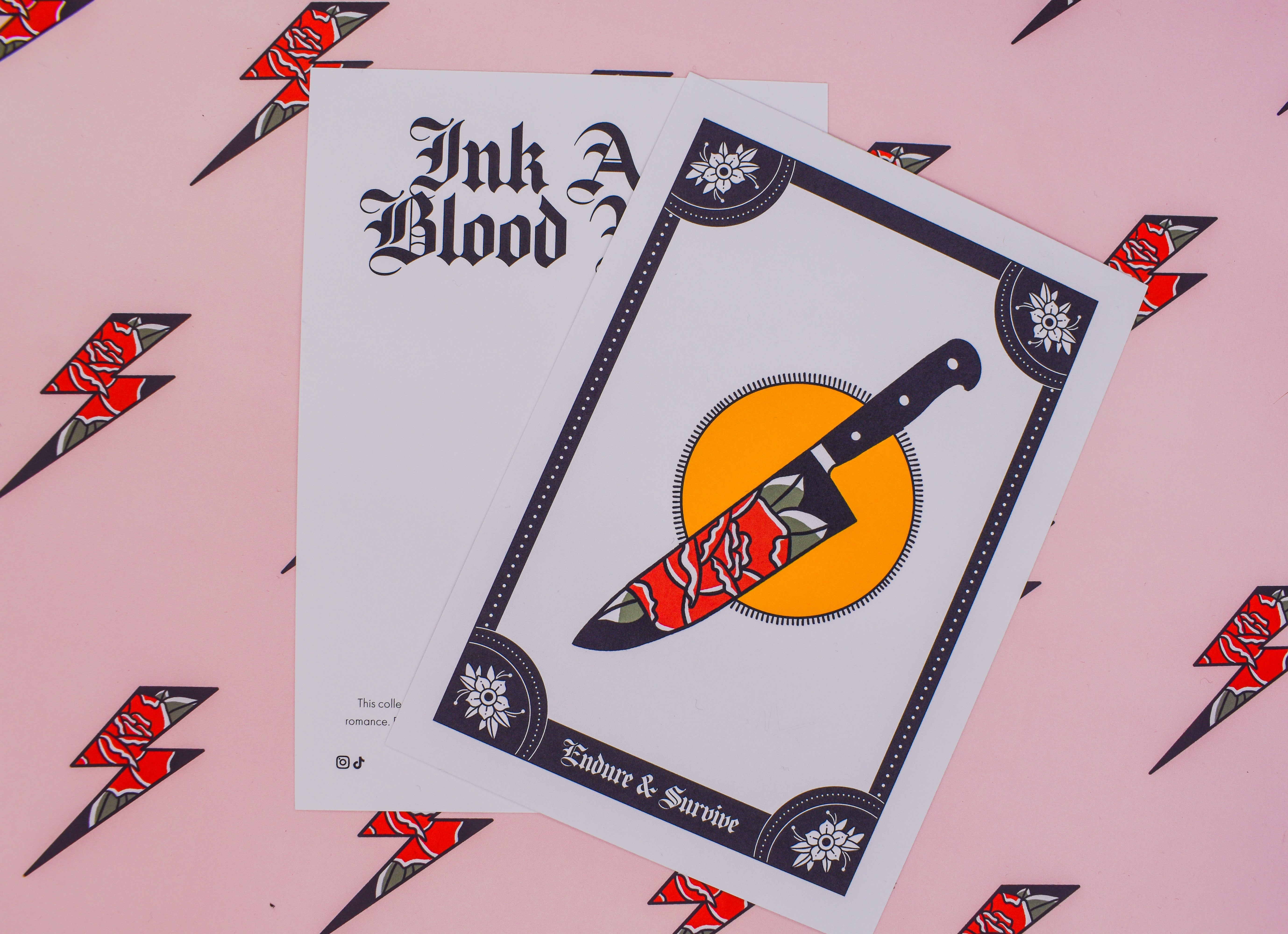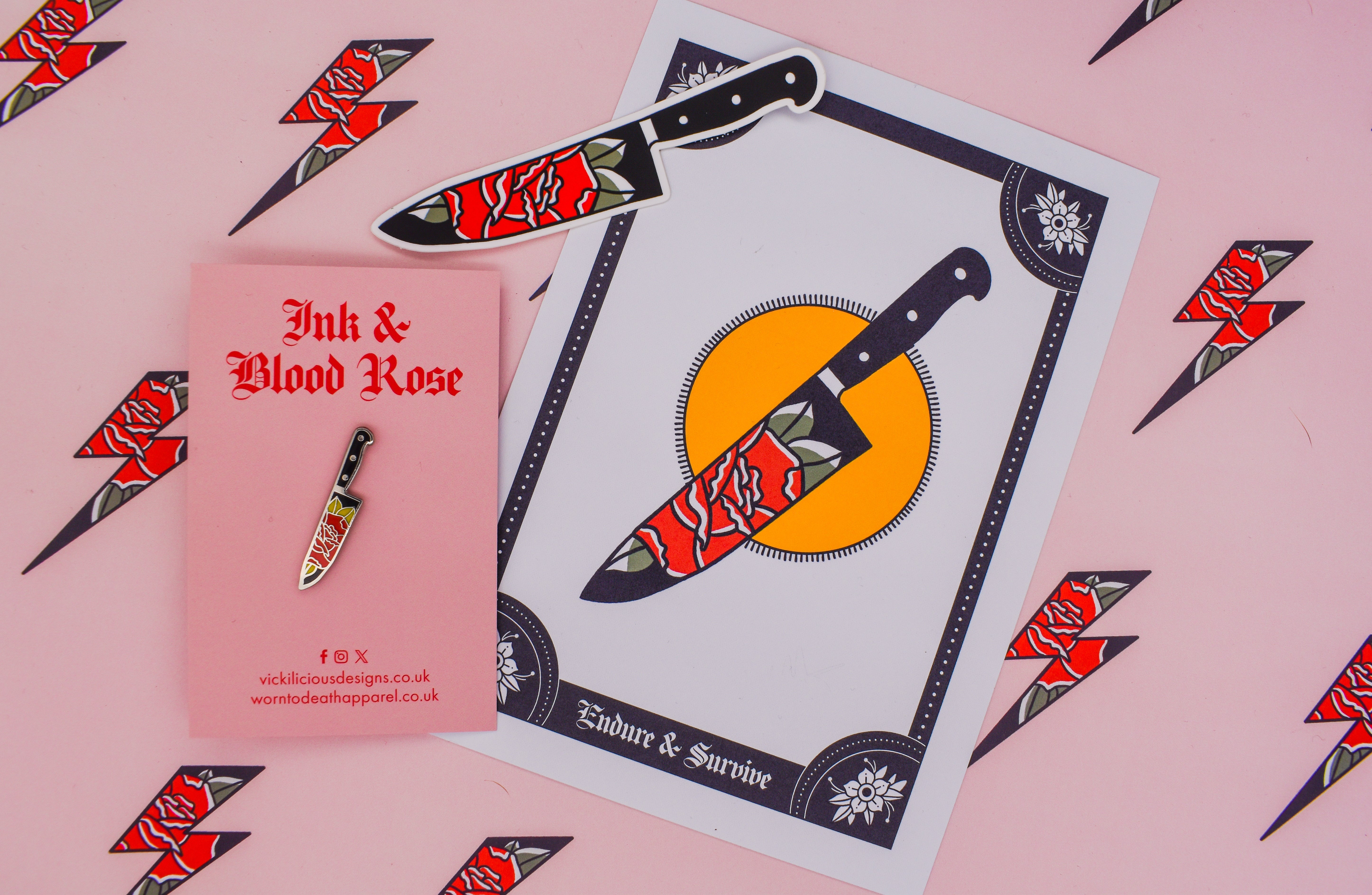 Endure & Survive | Floral Dagger Tattoo | Ink & Blood Rose Collectors Set
