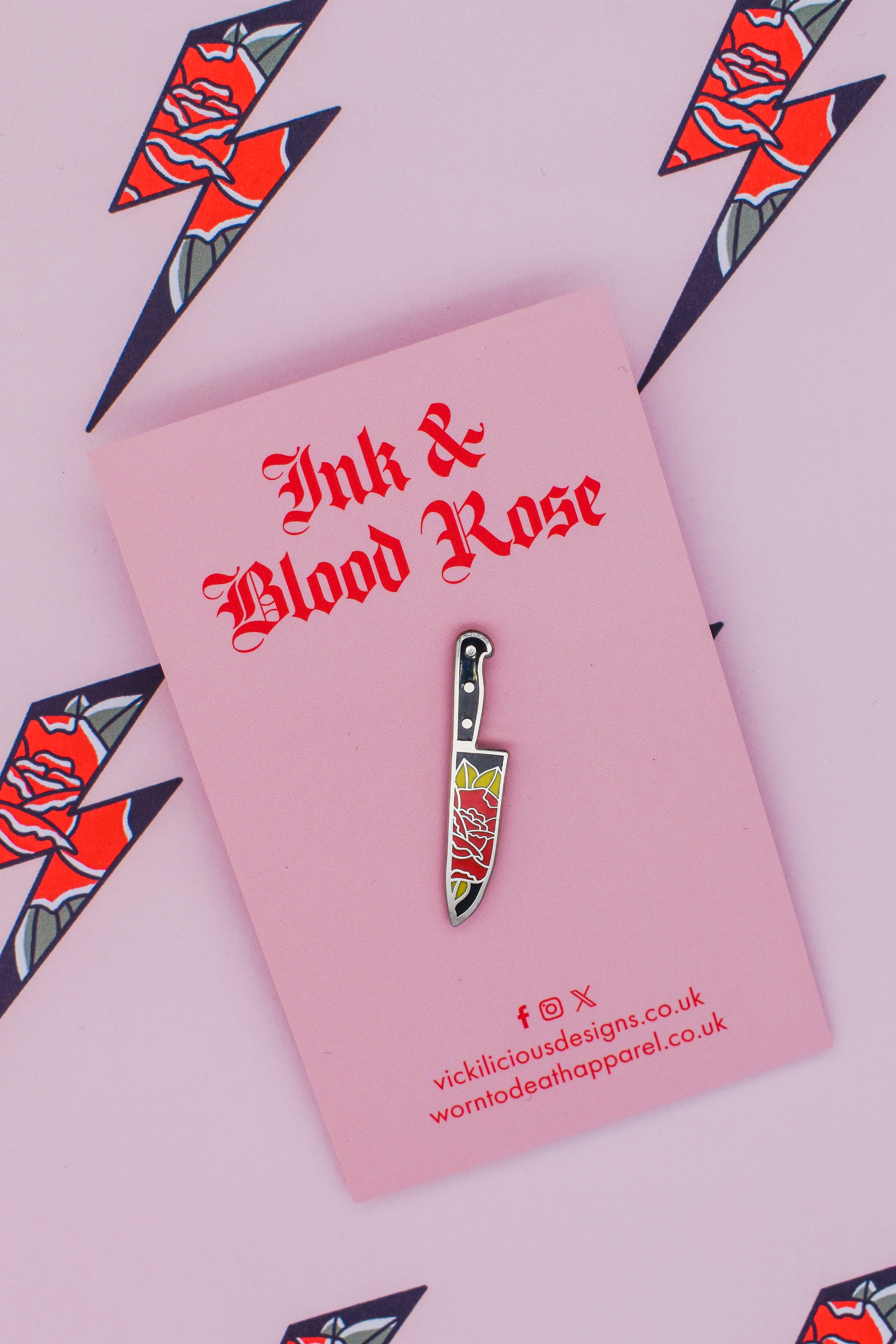 LOVE-STRUCK Lightning Bolt Tattoo Hard Enamel Pin | Rocker Gift | Ink & Blood Rose Collection