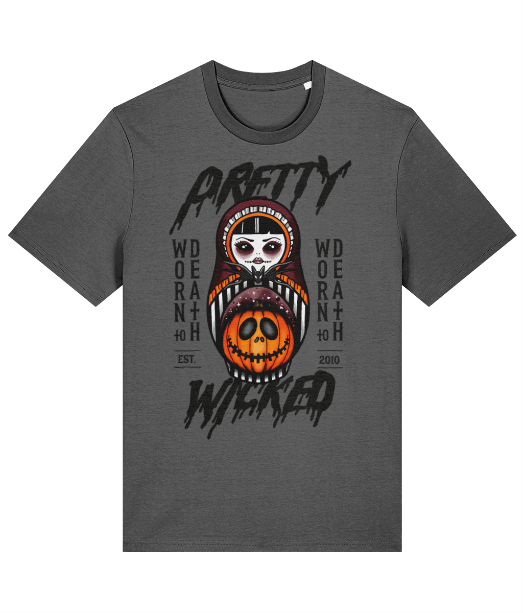 Add some gothic romance to your outfit by rocking my Worn to Death bride and groom skull Tee. White cotton t-shirt with large screen print on reverse of tattoo style...